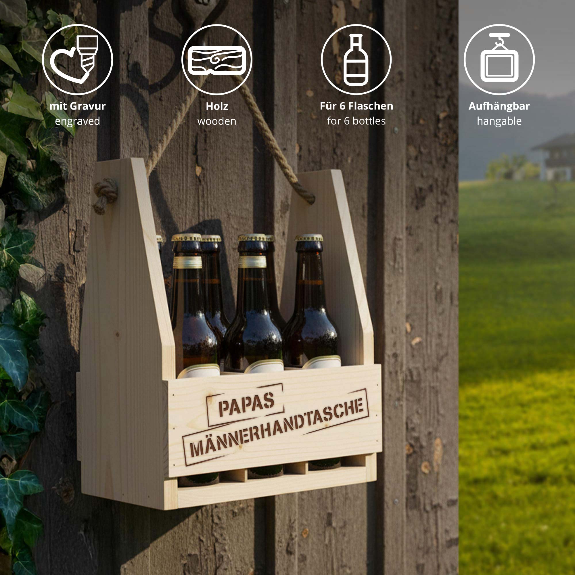 - Bierflaschenträger mit Gravur "Papas Männerhandtasche"