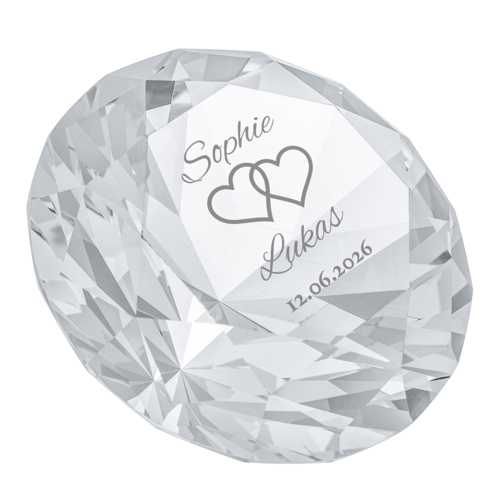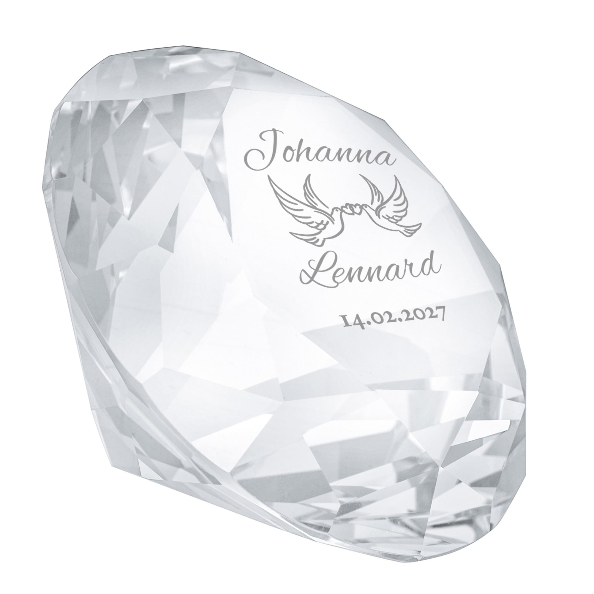 Diamant Kristall mit Gravur zur Hochzeit - Personalisiert