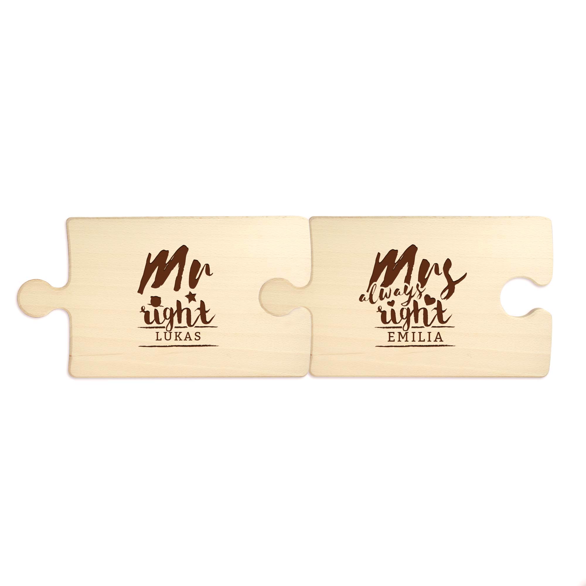 Puzzle Brett mit Gravur zur Hochzeit - 2er Set - Mr & Mrs Right