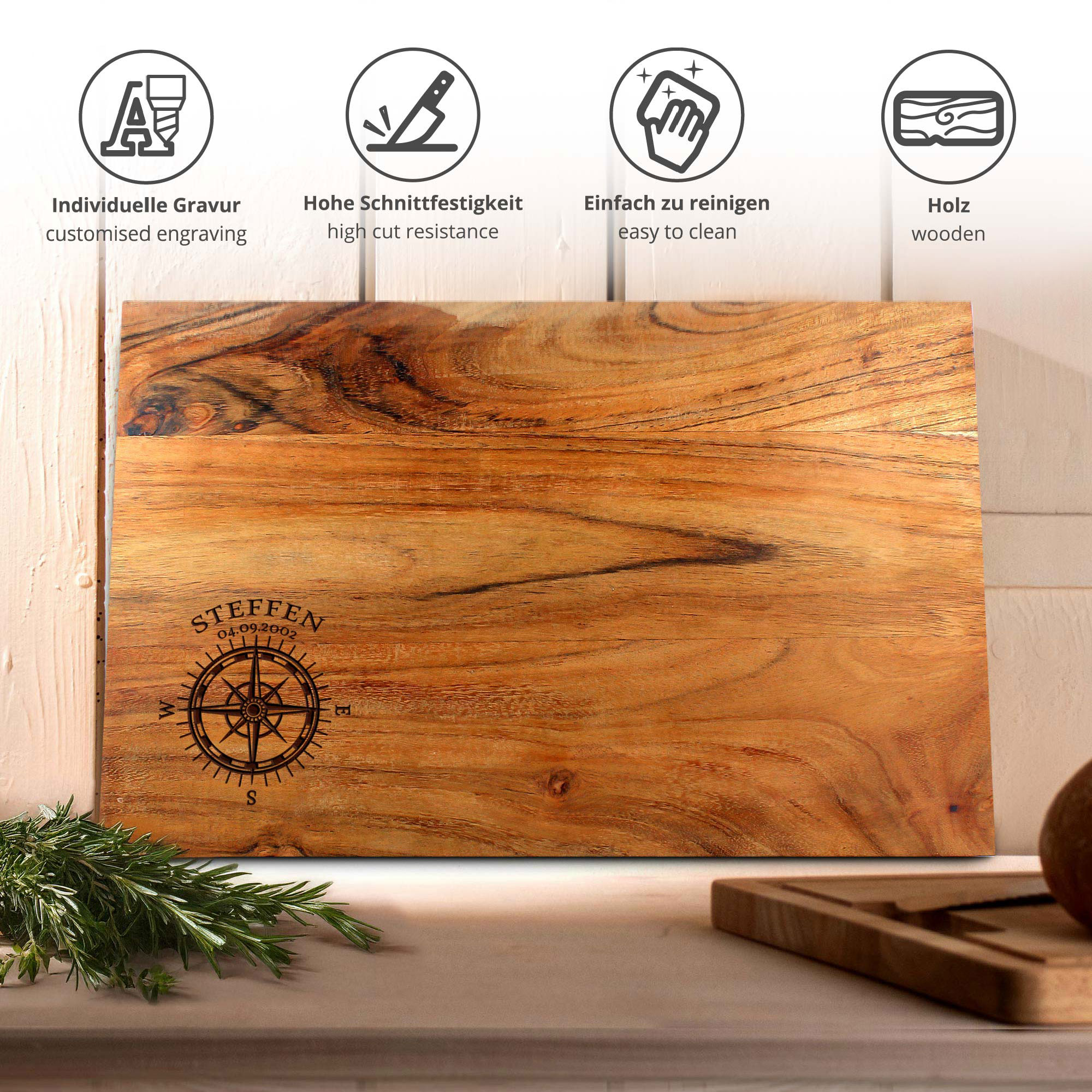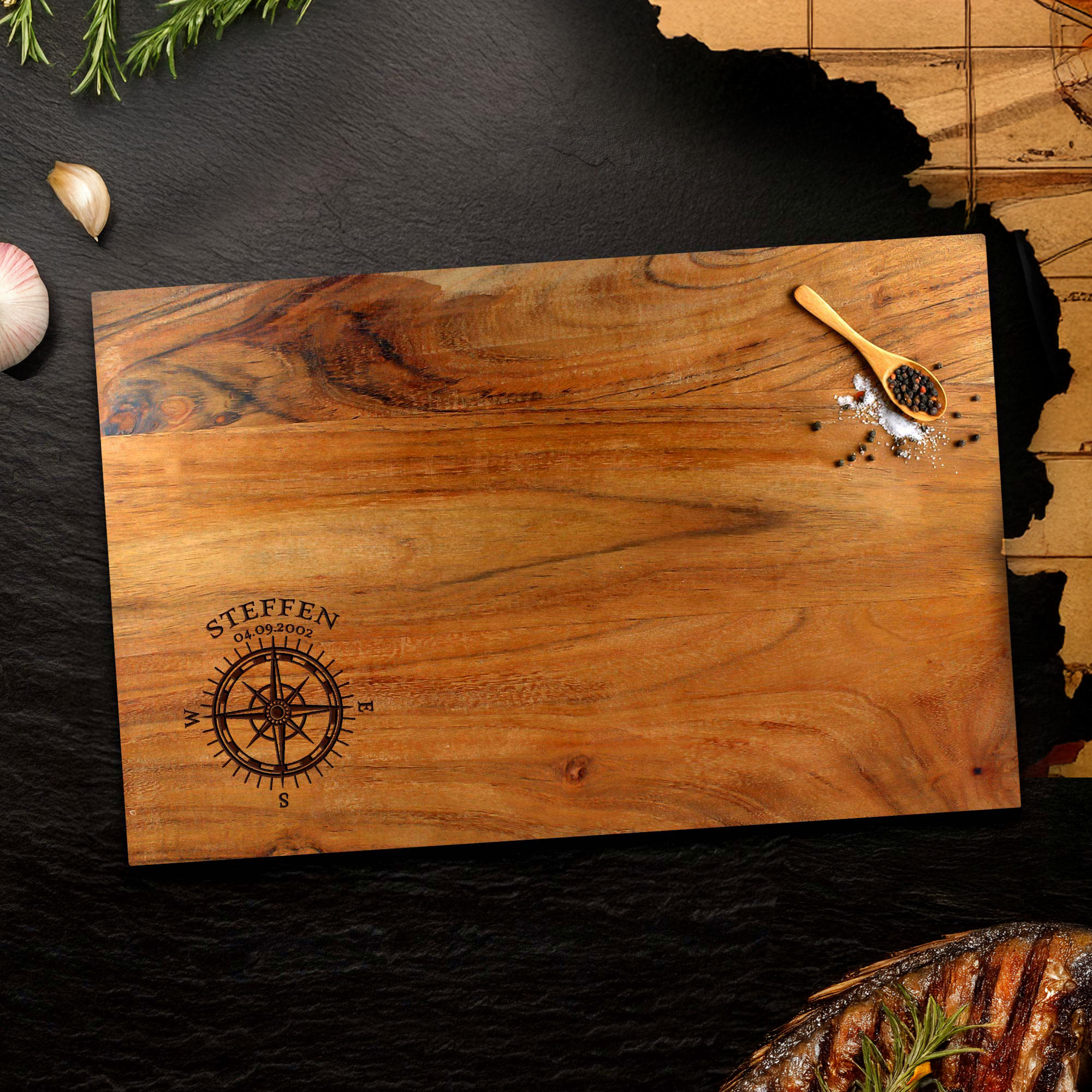 - Personalisiertes Schneidebrett mit Kompass Motiv