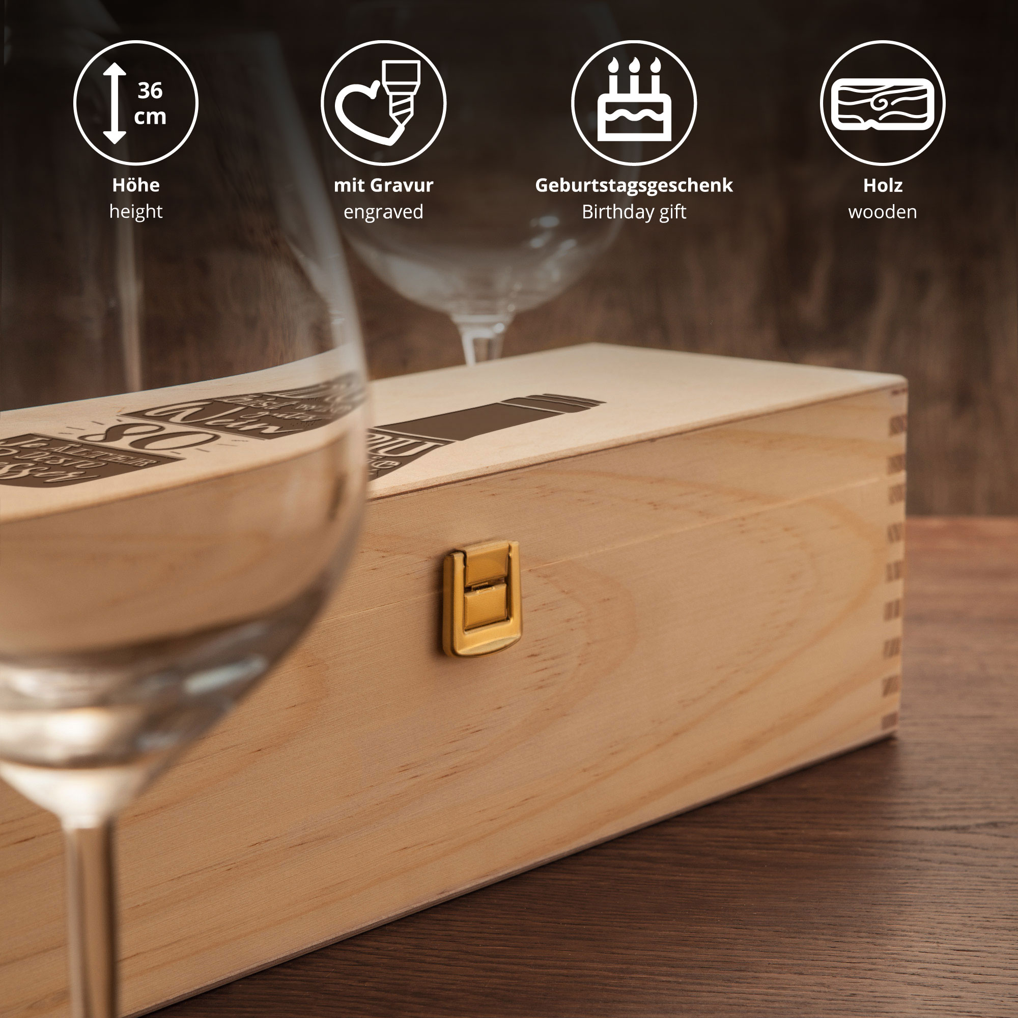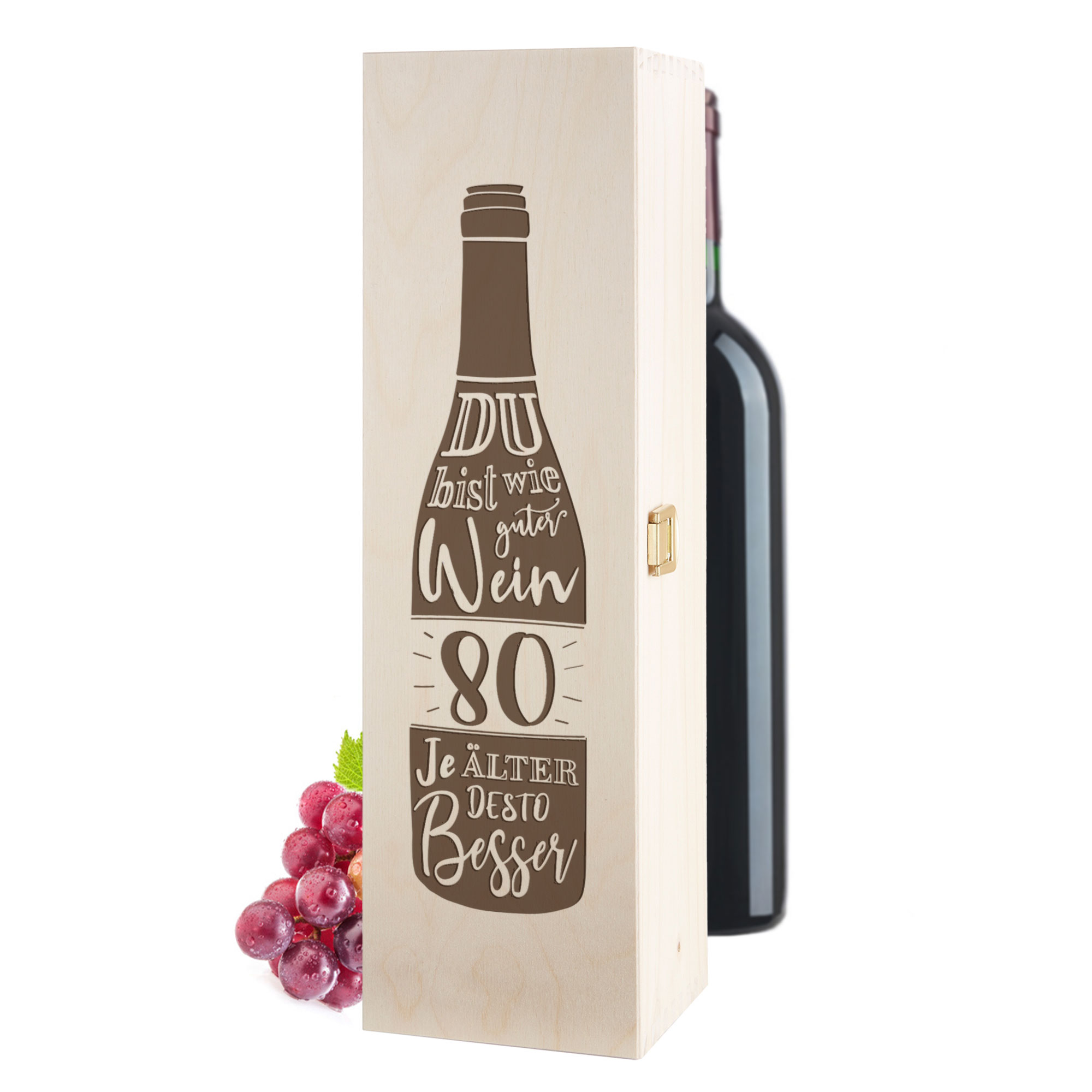 - Hochwertige Flaschenkiste mit Gravur zum 80. Geburtstag